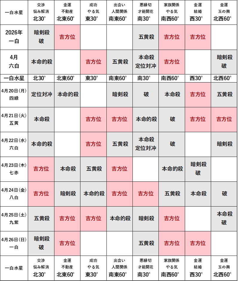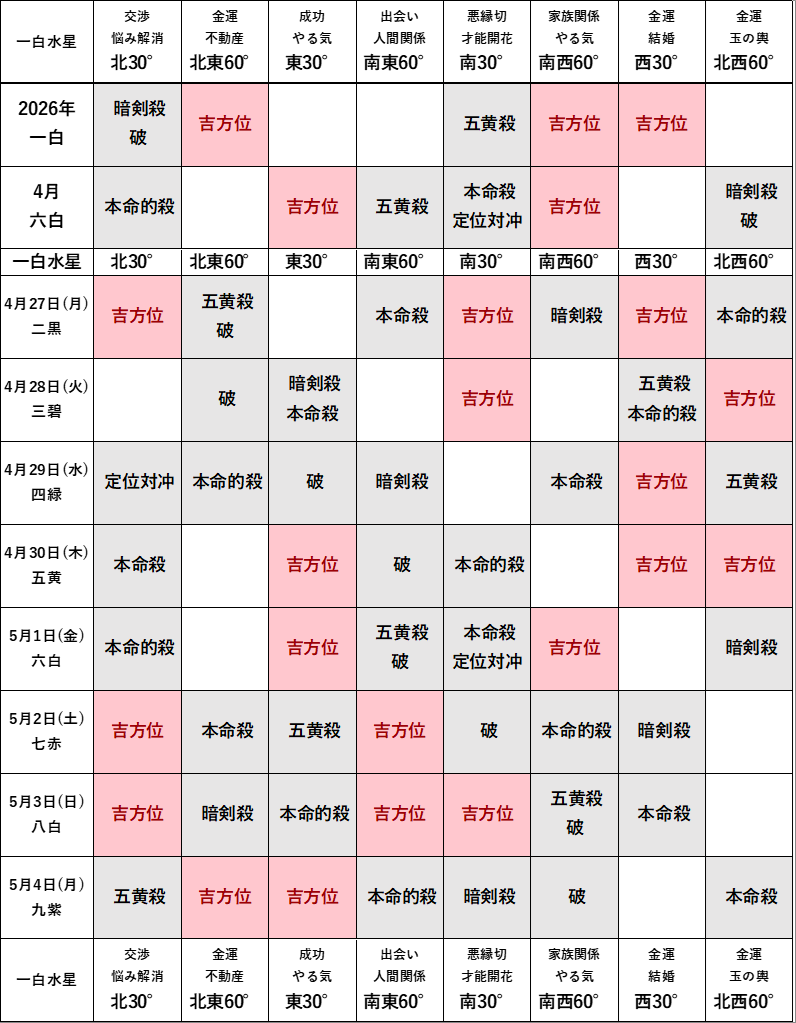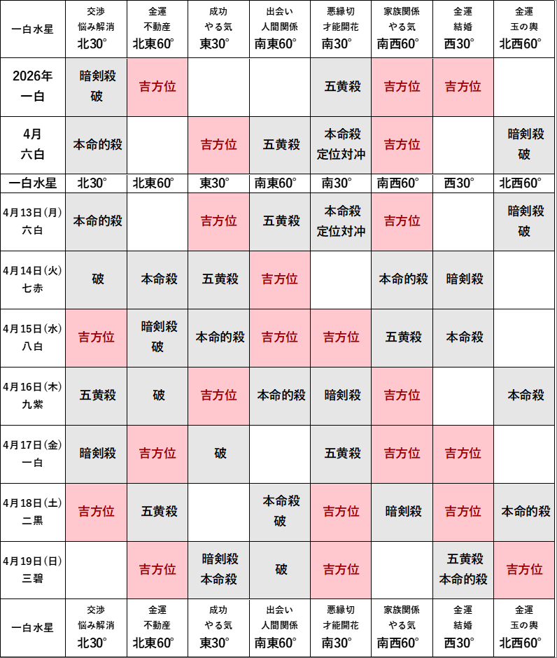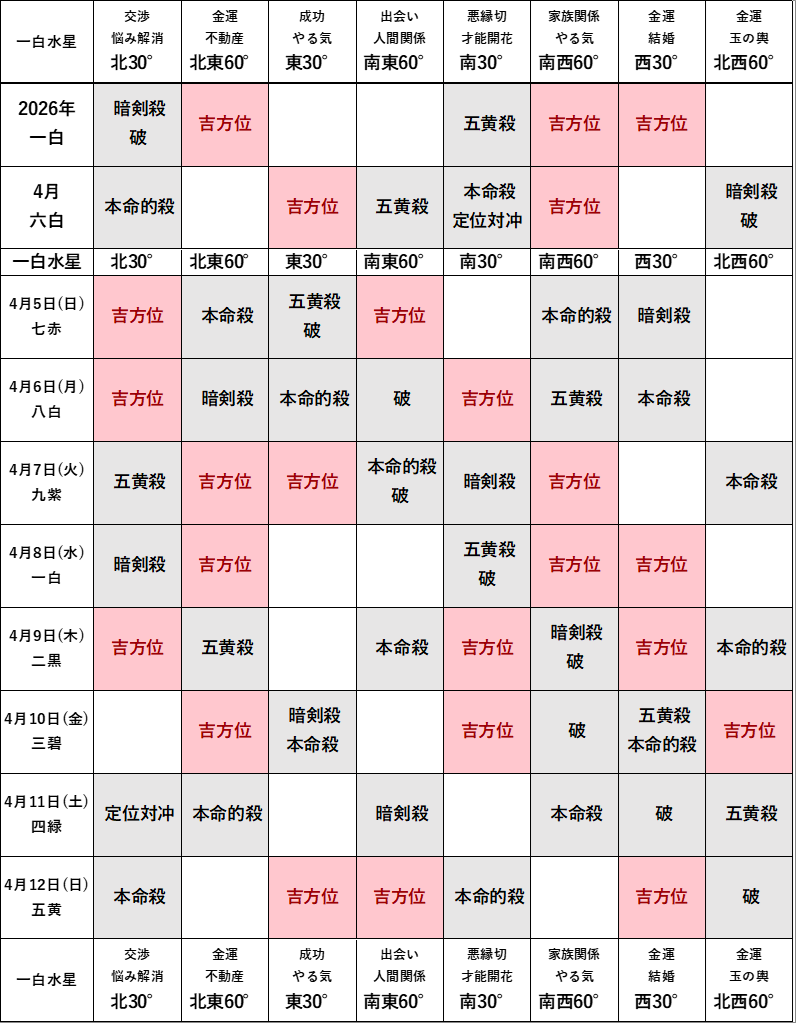 2026年4月の方位ポイントは?