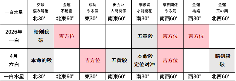 【2026年4月】年と月の方位