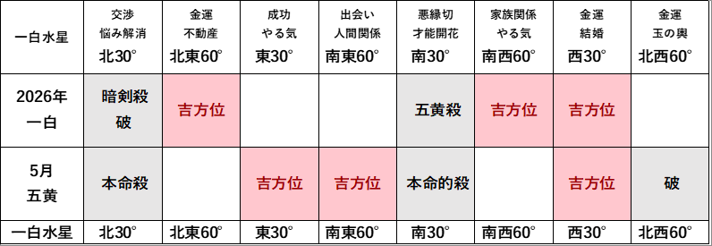 【2026年5月】年と月の方位
