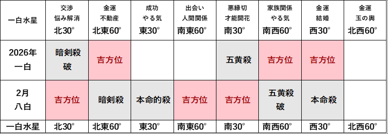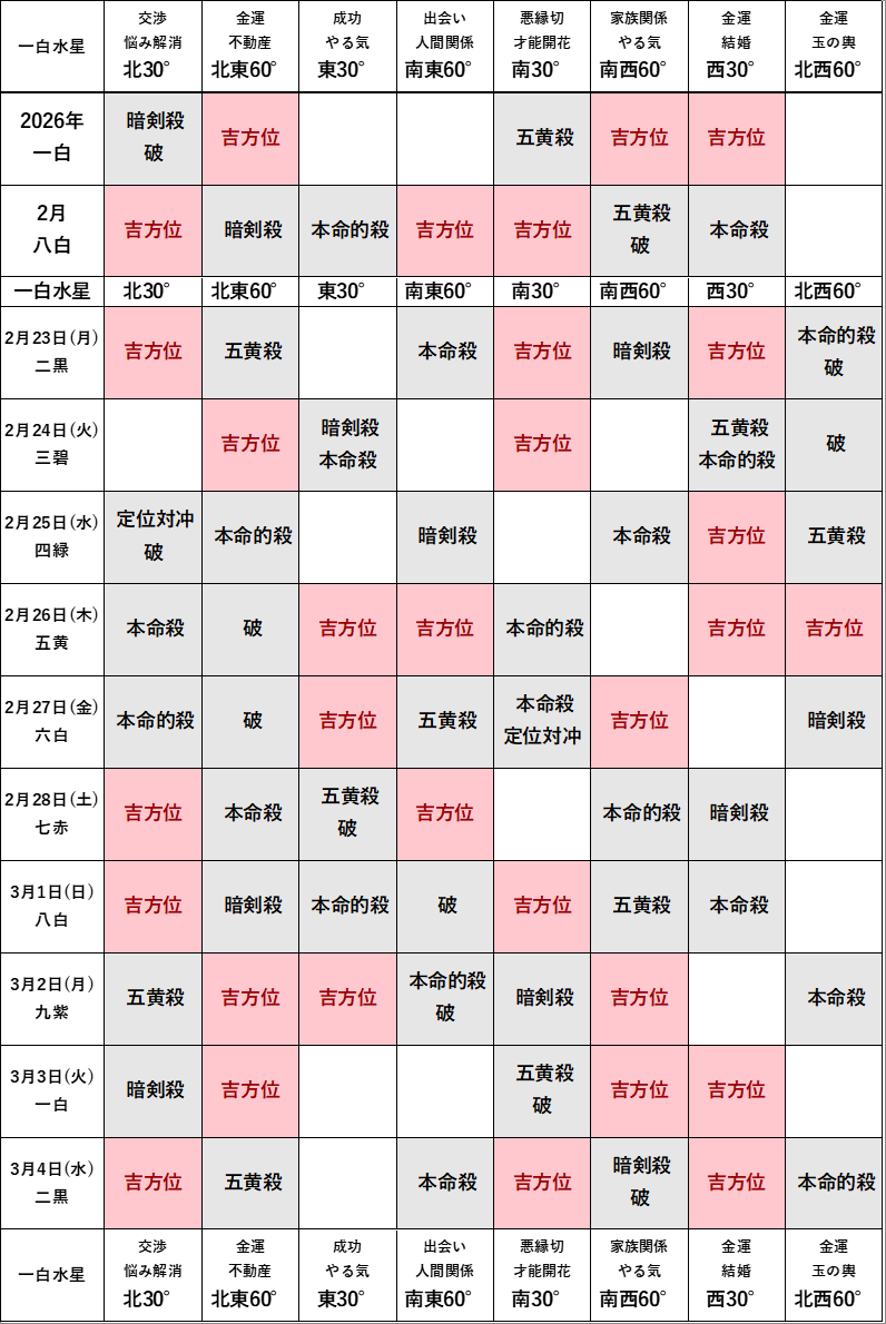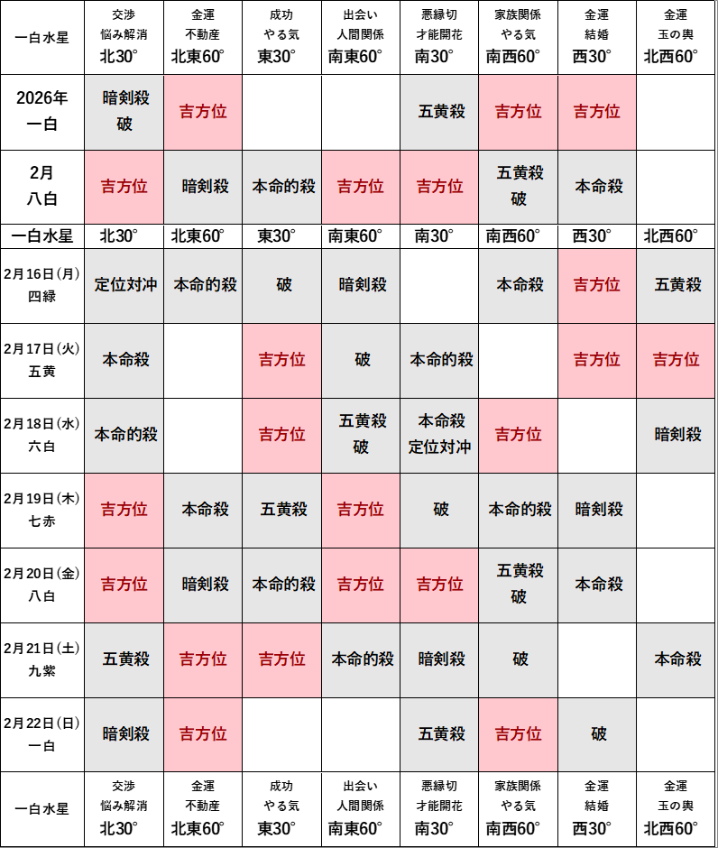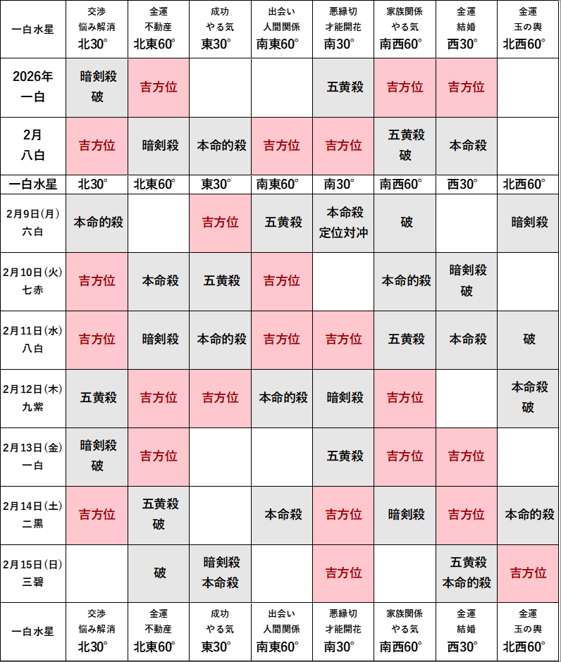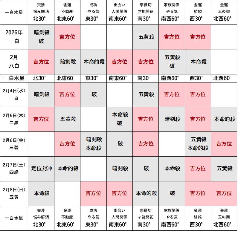 ※2月4日立春(05:02)までは年と月の方位が違うのでご注意下さい。