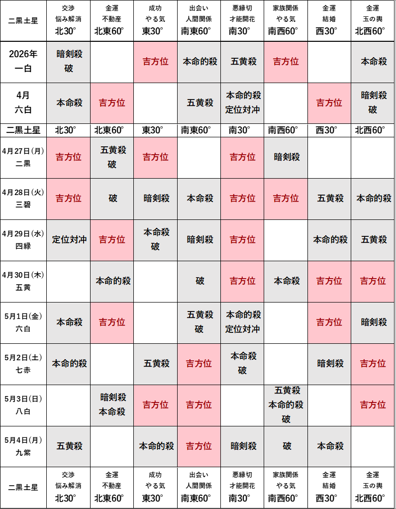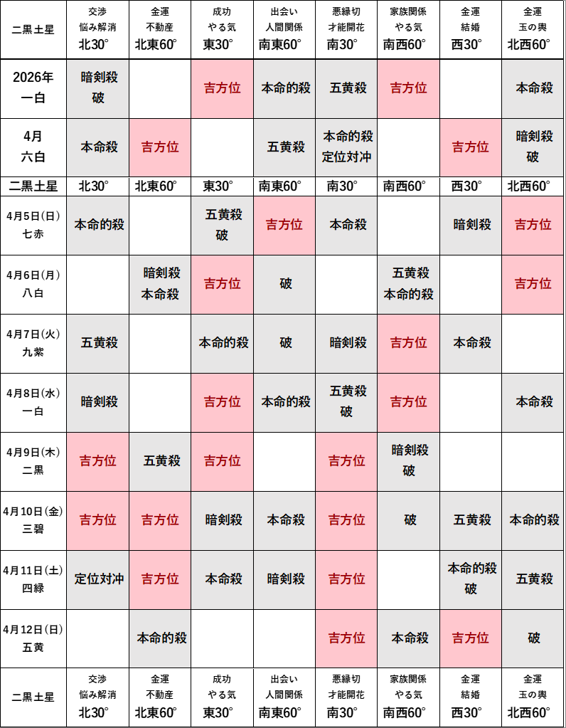 2026年4月の方位ポイントは?