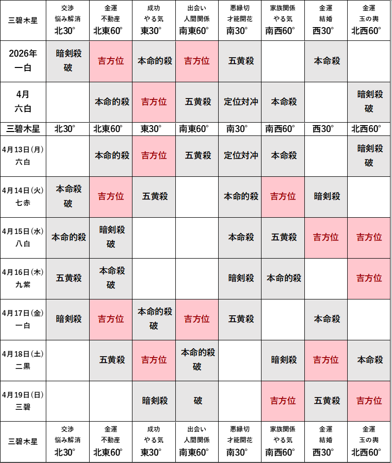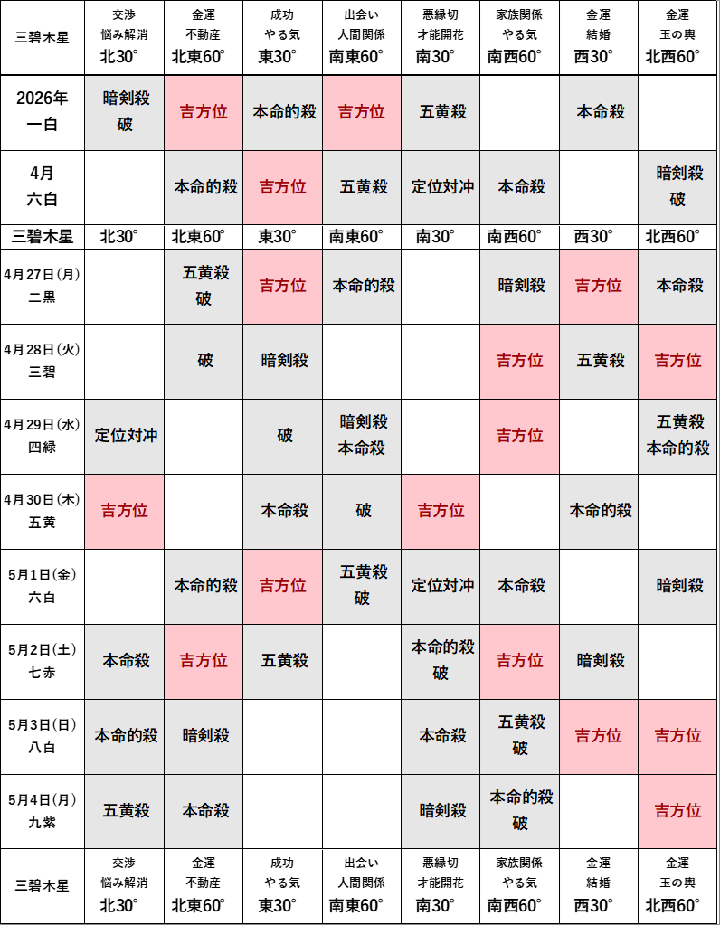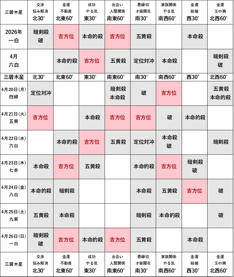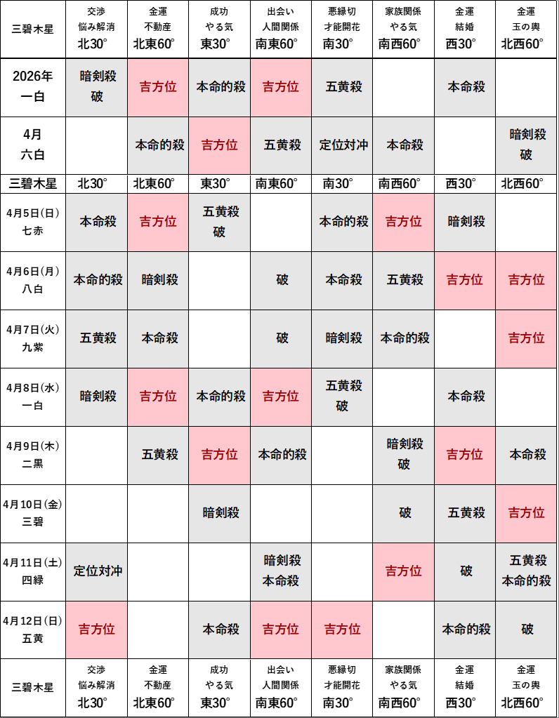 ※4月5日清明(03:40)までは前月の方位ですのでご注意下さい。