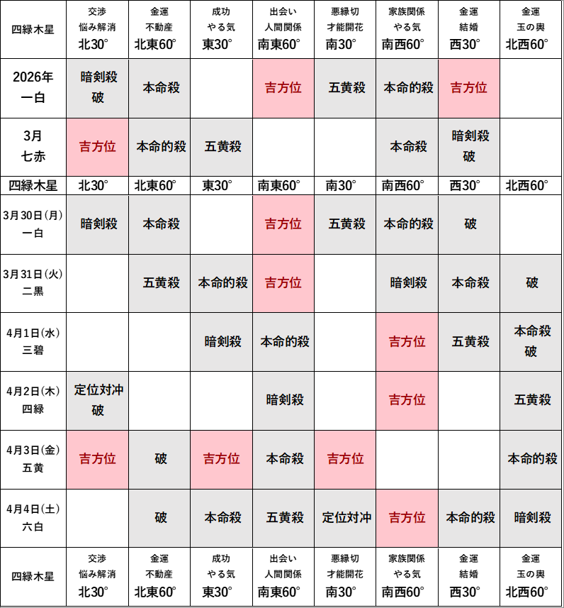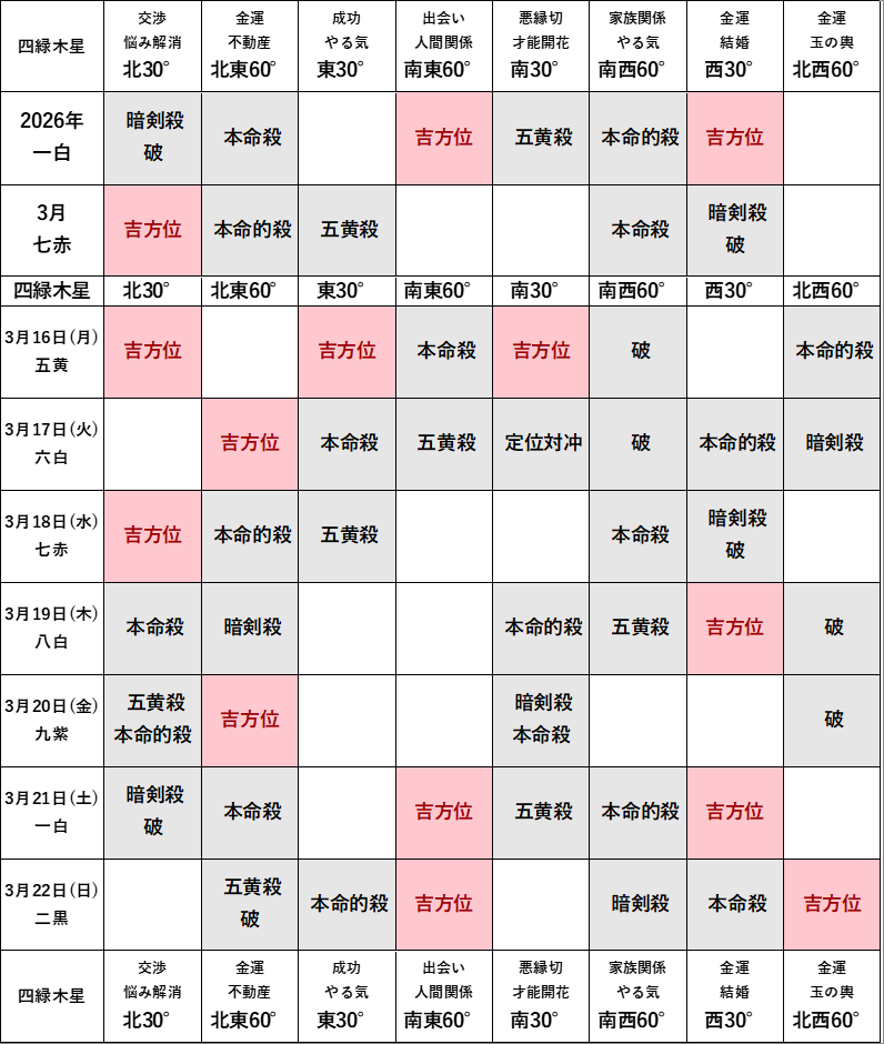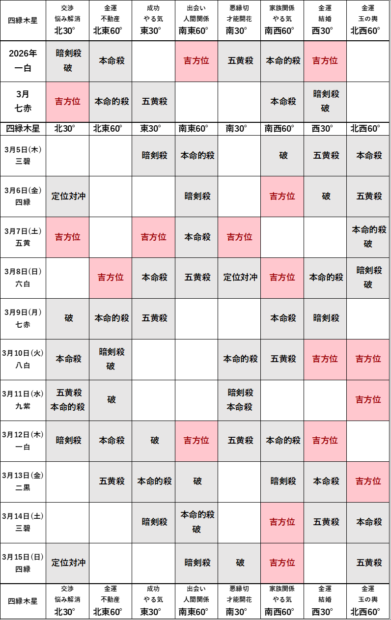 2026年3月の方位ポイントは?
