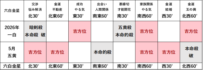 【2026年5月】年と月の方位