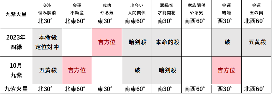 10月は東30°が暗剣殺、